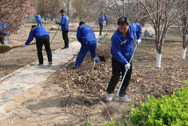 陽(yáng)春三月,春暖花開,綠草返青,涿州公司保潔綠化人員的工作應(yīng)接不暇。辦公樓東側(cè)兩個(gè)花園里冬天遺留的干樹枝和白色垃圾的存在,影響了此處美景。上午9點(diǎn)進(jìn)行主題黨日理論學(xué)習(xí)之后,支部書記李俊同志身先士卒,在崗黨員、干部、入黨積極分子緊隨其后,鐵锨、掃帚、耙子、小推車等勞動(dòng)工具齊上陣,你看,有的在撿樹枝,有的在撿垃圾,有的清掃枯葉,有的在平整土地,有的在裝車.....,場(chǎng)面好不熱鬧。經(jīng)過(guò)近2個(gè)小時(shí)的勞動(dòng),兩個(gè)花園的環(huán)境改善了很多,同志們雖然滿身灰塵,但是看著勞動(dòng)成果,心中充滿了開心和喜悅。